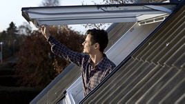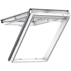 Grenzenloser Ausblick: VELUX Klapp-Schwingfenster mit untenliegender Bedienung lassen sich ganz bequem Öffnen und Schließen. Durch den großzügigen Öffnungswinkel gewähren sie eine uneingeschränkte Aussicht ins Freie. Das Fenster wird mit dem Griff unten am Fenster bedient und wird optimalerweise mit einer Fensterunterkante von 120 cm eingebaut. Mit der zusätzlichen Schwingfunktion kann das Fenster ganz bequem geputzt werden. Erhätlich in Holz (GPL) und Kunststoff (GPU).