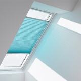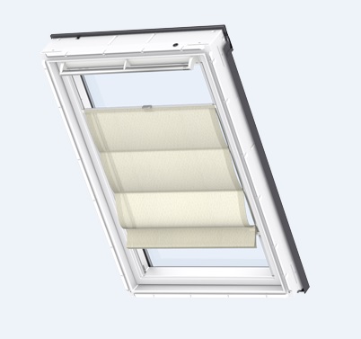 Mit lichtdurchlässigen VELUX Faltrollos tauchen Sie Ihren Wohnraum in eine besonders elegante, sanfte Lichtstimmung und schaffen damit individuelle Dekoakzente sowie mehr Wohnambiente.