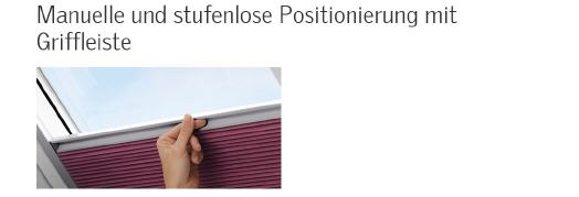 - Stufenlose Positionierung - ohne Bedienschnüre